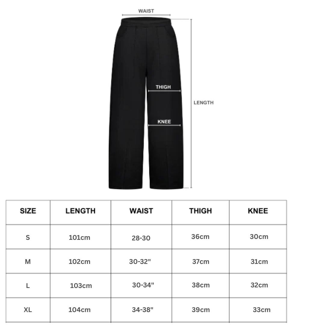 Yes, the fit has an oversized relaxed fit, and the sweats feature a wide-leg design with an adjustable waistband.